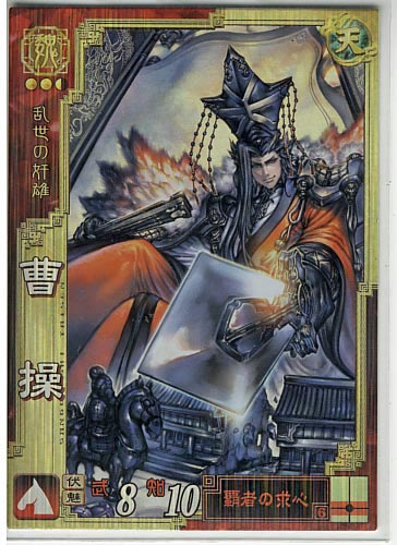 名:奸雄 字:ツミ 調布のゲーセンをホームグランドに暴れております。 チーム「乱華」のリーダーをやっております。 君主名は奸雄です。 呂布ワラメイン、蜀or魏をサブデッキで使っております。 見かけましたら気軽に話しかけてください。 蒼天航路の話しをされると喜びます。